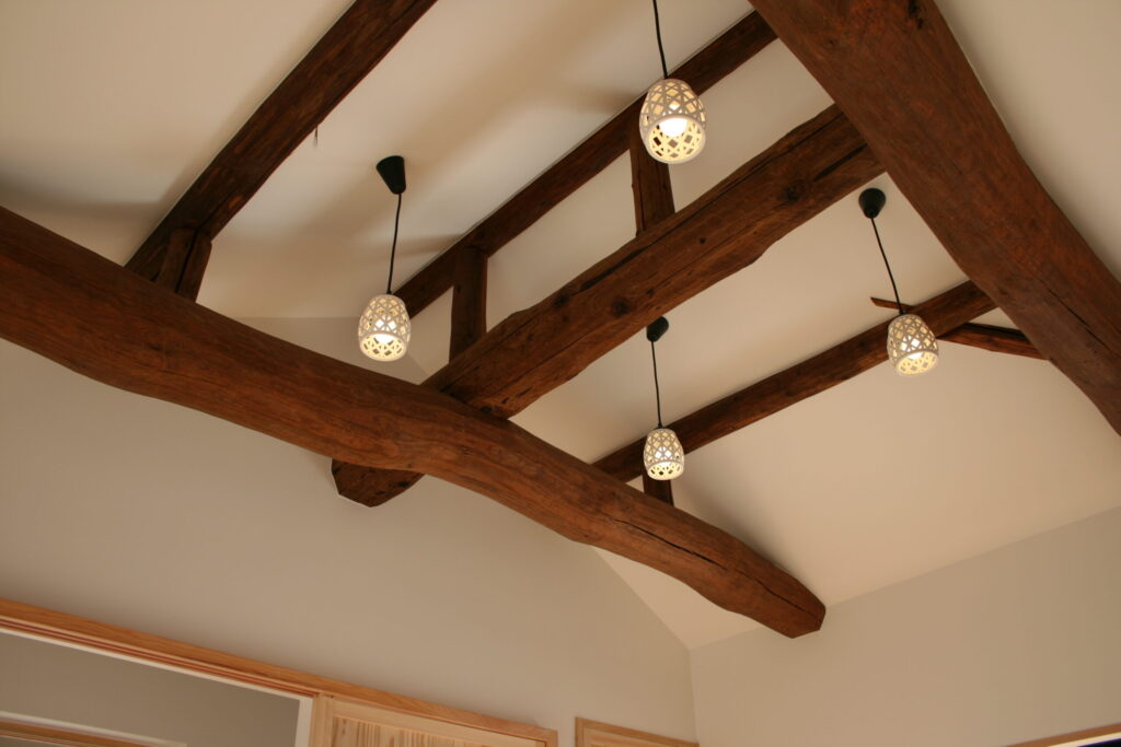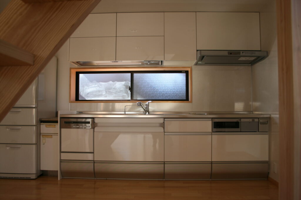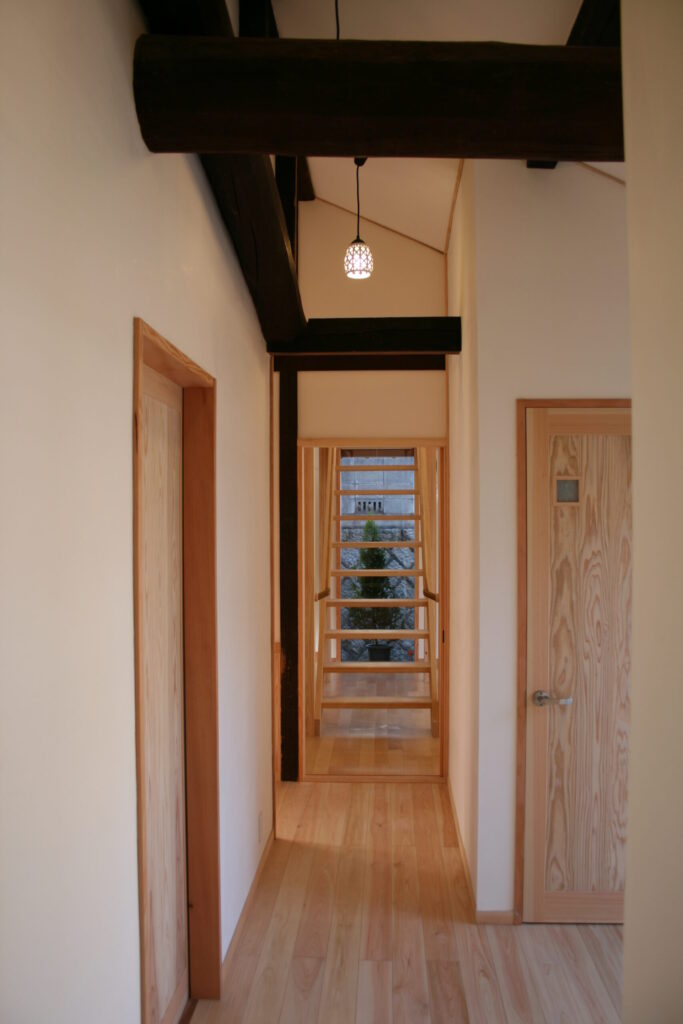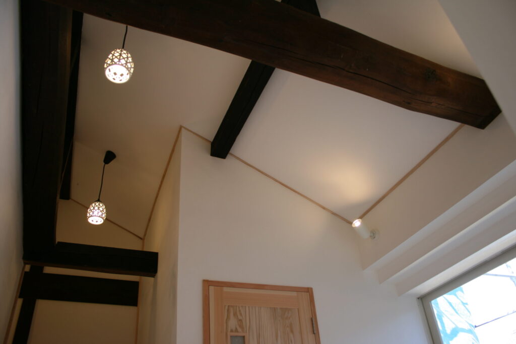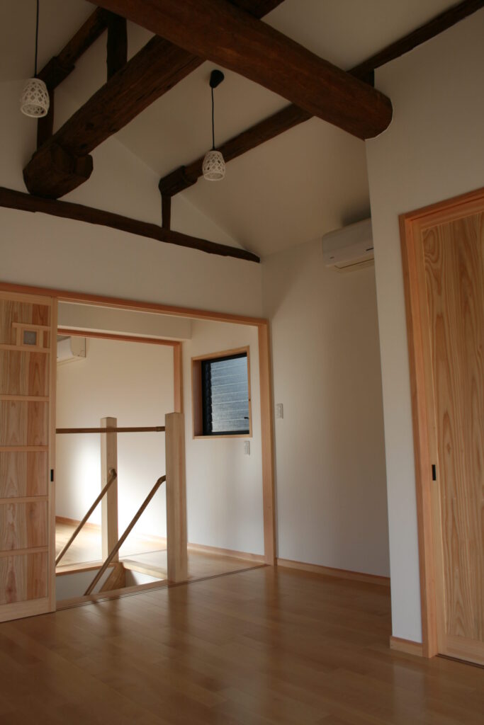 部屋の中央に設けられた、吹抜階段から明るい光が差し込み、スリット階段にすることにより、広々としたリビング、ダイニングとなりました。