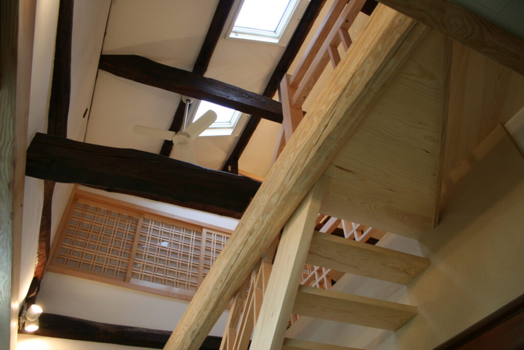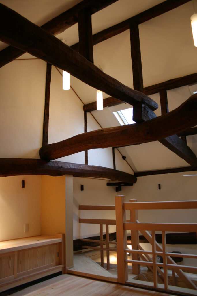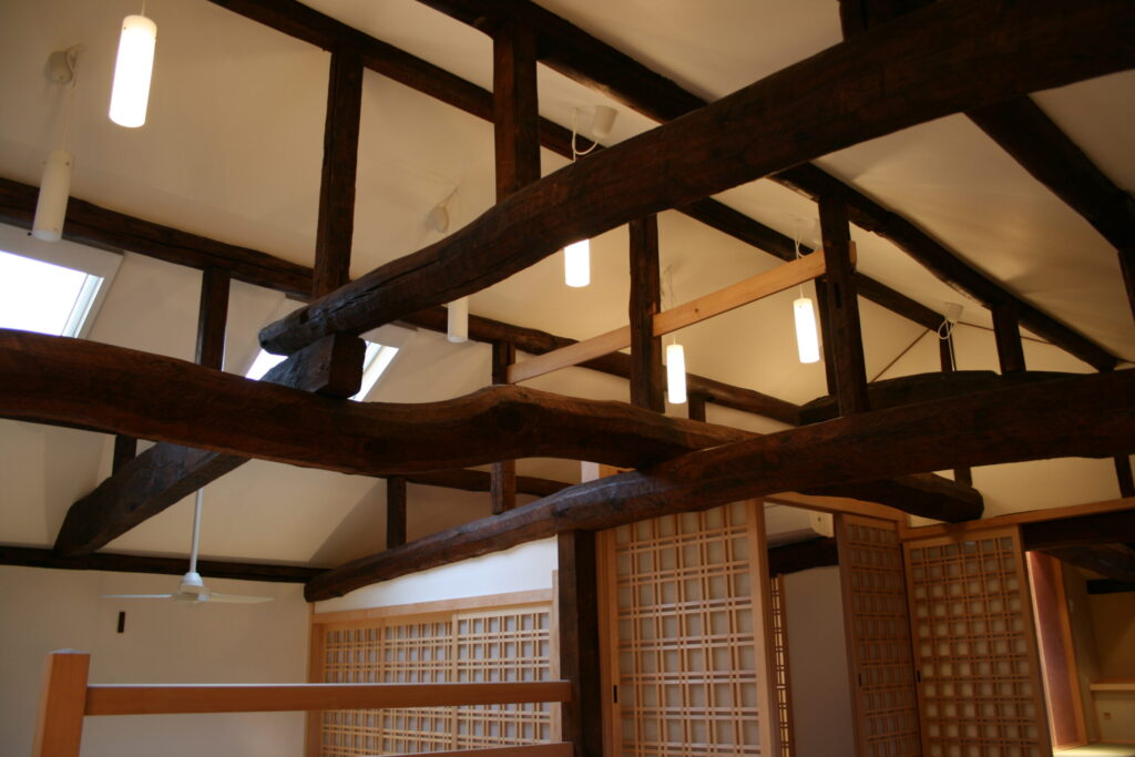 当初2階には、全く床がない状態でしたので、梁を組んで床を作るところからはじめました。