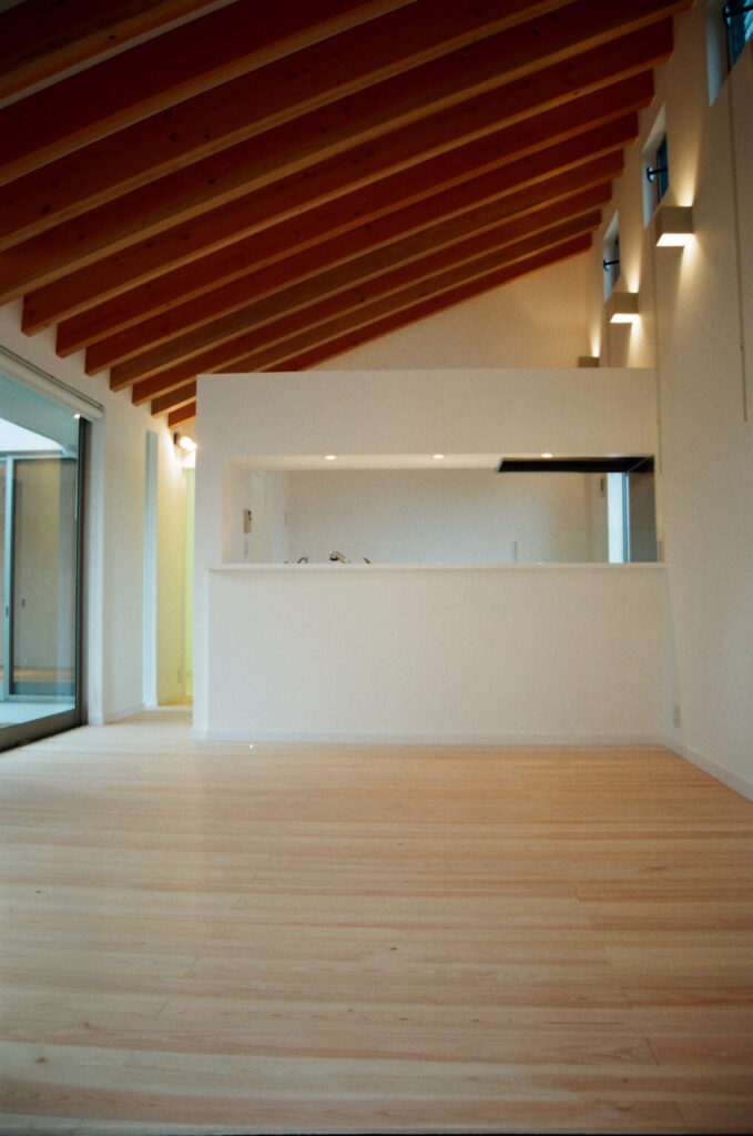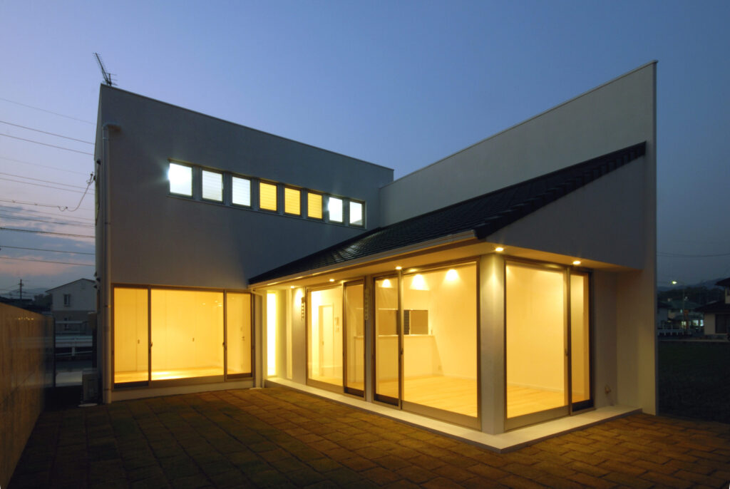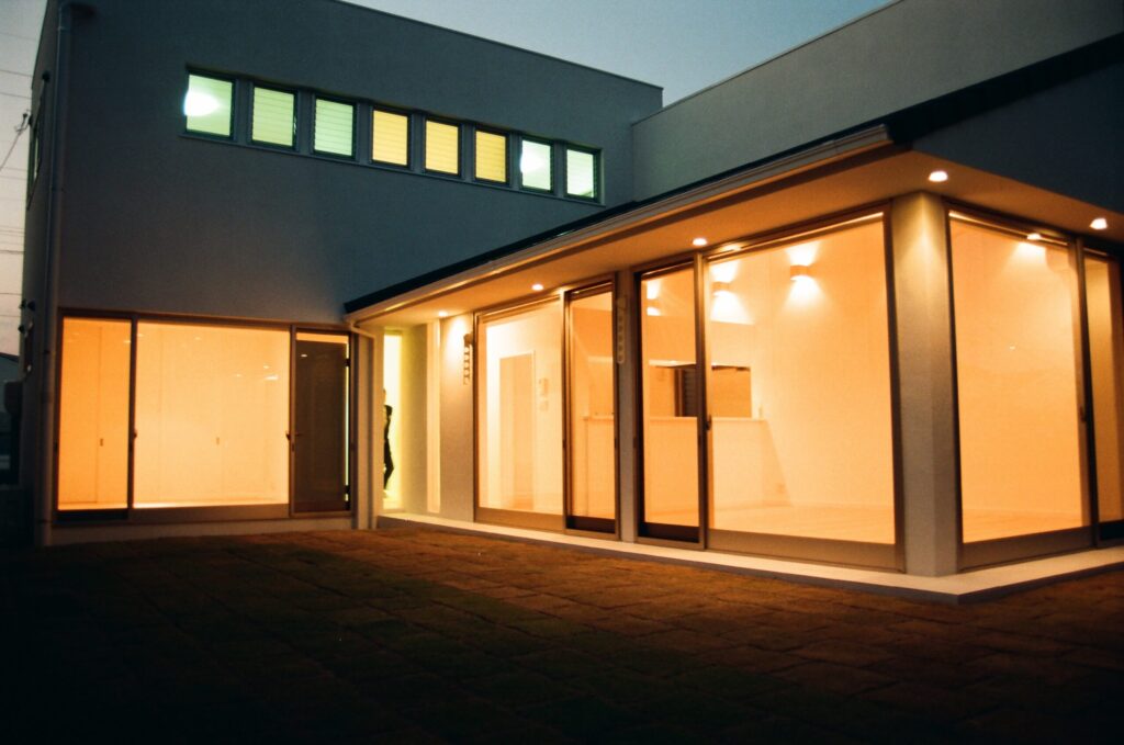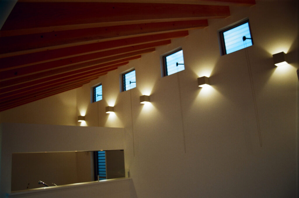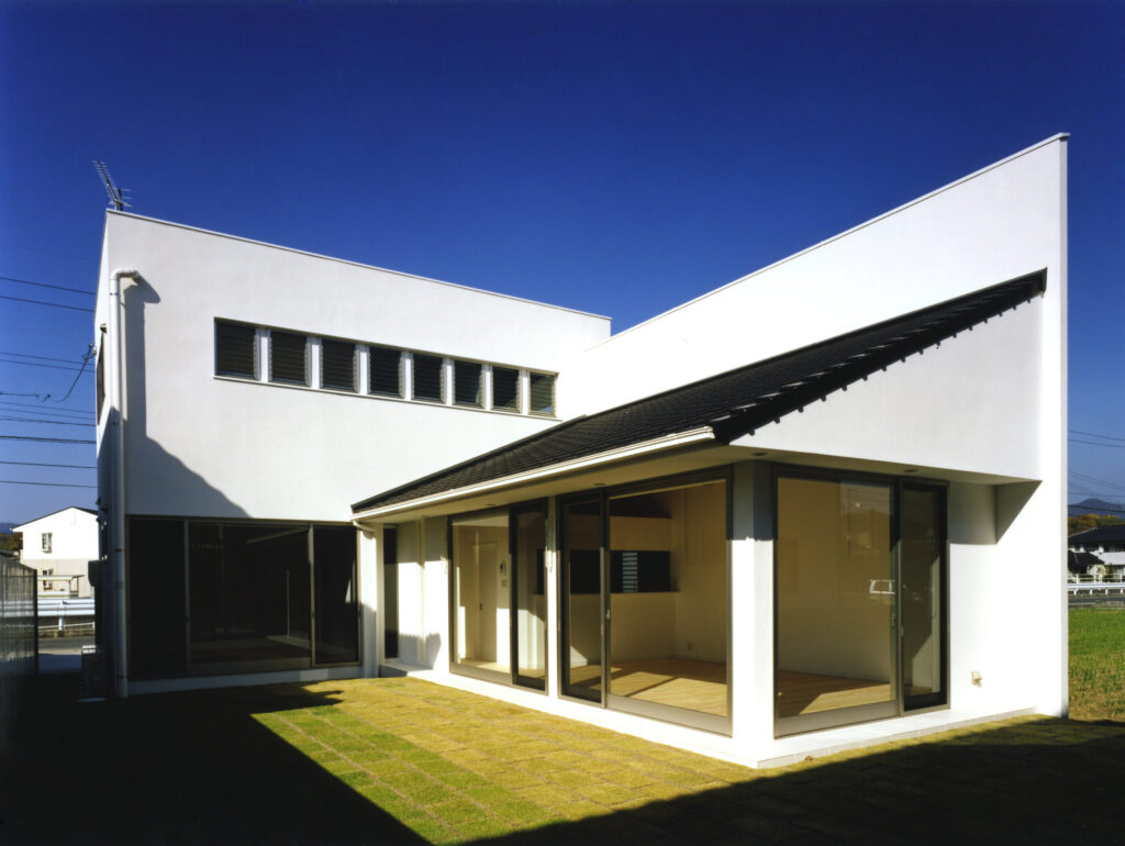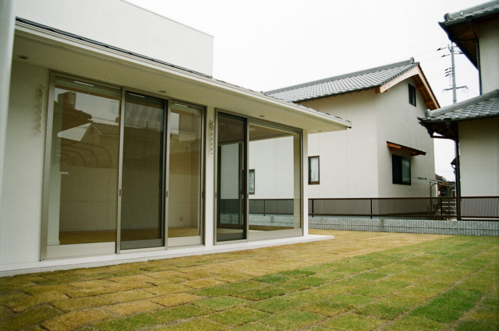 正面が西側にあたり、大きな道路に面していることから、西日、騒音対策の意味もあり、閉じた外観としました。