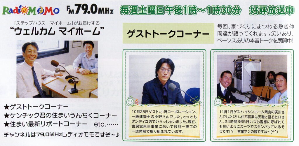 レディオMOMO 2008年10月25日、11月22日放送のウェルカムマイホームにてゲストで出演しました。