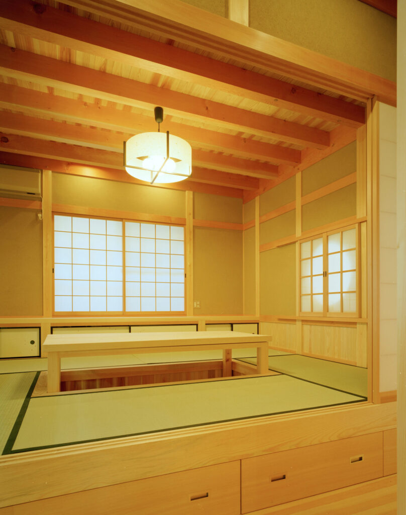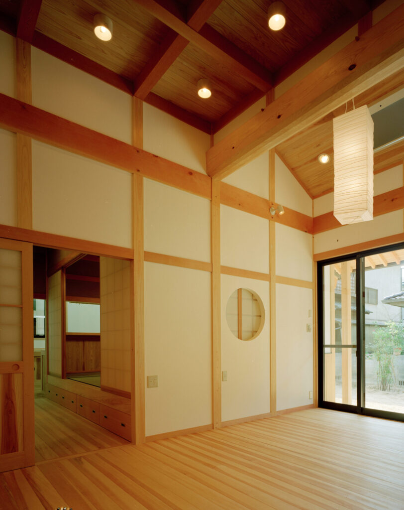 倉敷格子やよろい張りの腰板、手彫りの持ち送り、掘りごたつや丸窓、など、和のテイストがいたるところにちりばめられています。